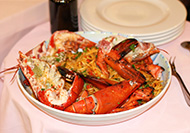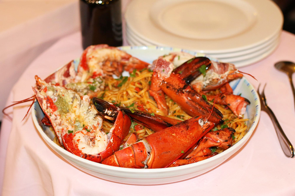 humr podávaný s těstovinou linguine a rajčatovou omáčkou (pro 2 osoby)